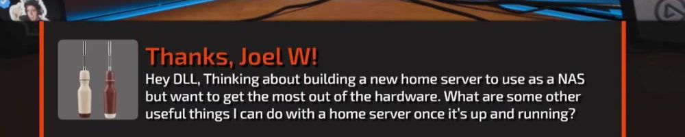 Thanks, Joel W! Hey DLL, Thinking about building a new home server to use as a NAS but want to get the most out of the hardware. What are some other useful things I can do with a home server once it's up and running?