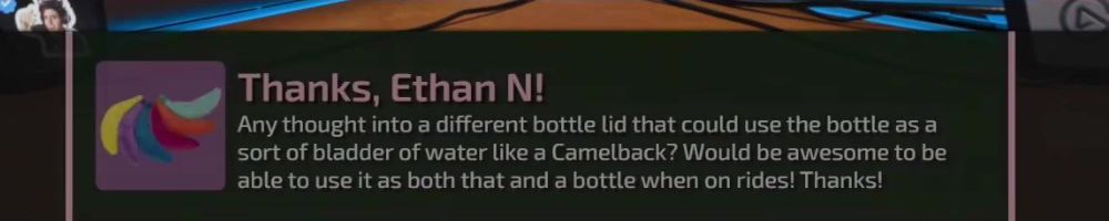 Thanks, Ethan N! Any thought into a different bottle lid that could use the bottle as a sort of bladder of water like a Camelback? Would be awesome to be able to use it as both that and a bottle when on rides! Thanks!