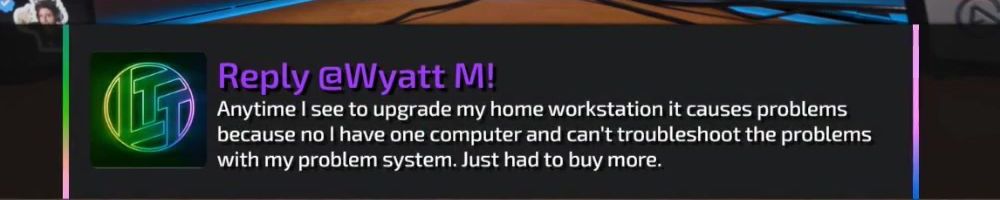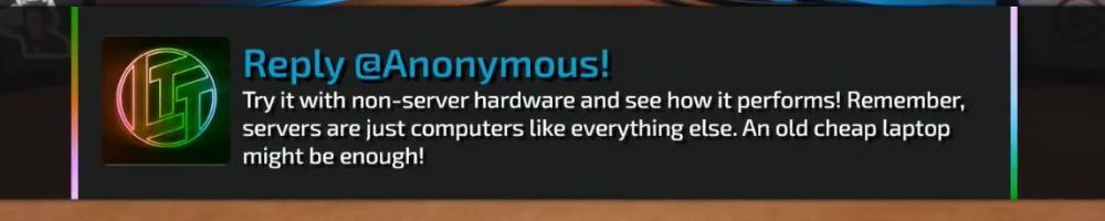 Thanks, Anonymous! Linux I've watched you from the ncix days. Long before luke, kids and your marriage. If it wasn't for LTT and the passion it sparked in me. My county boy self wouldn't be a IT manager for a Bank. ty