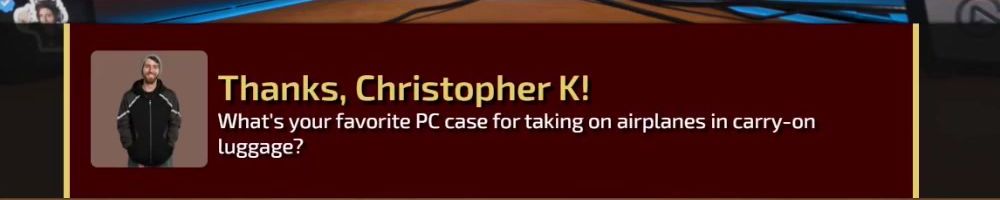 Thanks, Christopher K! What's your favorite PC case for taking on airplanes in carry-on luggage?