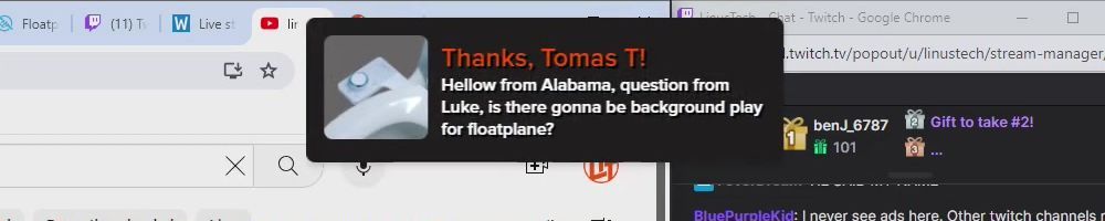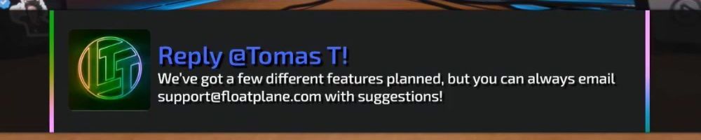 Thanks, Tomas T! Hellow from Alabama, question from Luke, is there gonna be background play for floatplane?