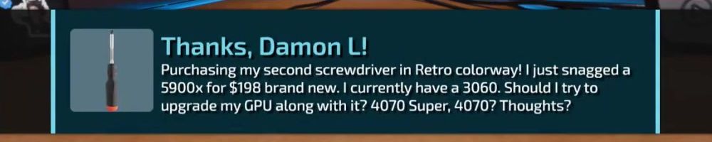 Thanks, Damon L! Purchasing my second screwdriver in Retro colorway! I just snagged a 5900x for $198 brand new. I currently have a 3060. Should I try to upgrade my GPU along with it? 4070 Super, 4070? Thoughts?