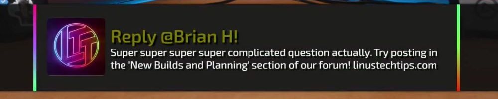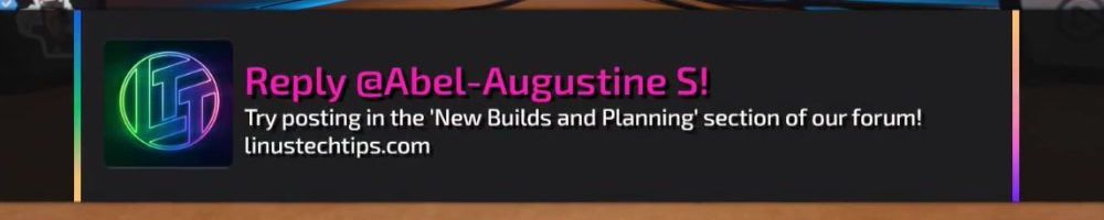 Reply @Abel-Augustine S! Try posting in the ‘New Builds and Planning’ section of our forum! linustechtips.com