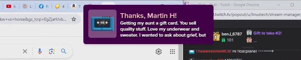 Hint: Use CTRL + F to search messages in this show, or use Whenplane's WAN Show Search tool to search for messages in all shows. Make sure that the "Merch Messages" box is checked when you search for something.