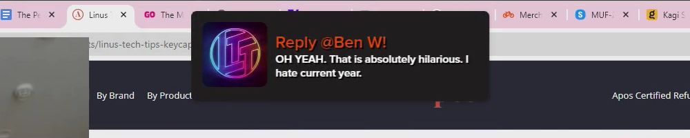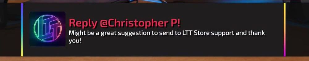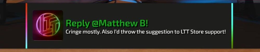 Reply @Matthew B! Cringe mostly. Also I'd throw the suggestion to LTT Store support!
