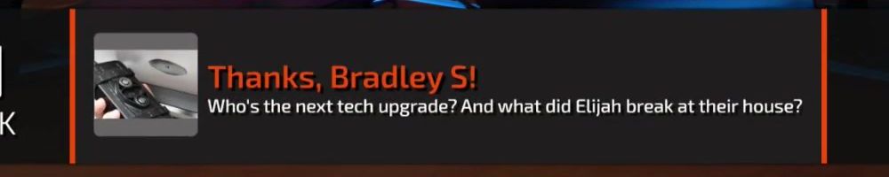 Thanks, Bradley S! Who's the next tech upgrade? And what did Elijah break at their house?