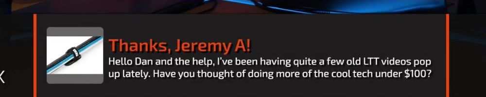 Thanks, Jeremy A! Hello Dan and the help, I've been having quite a few old LTT videos pop up lately. Have you thought of doing more of the cool tech under $100?