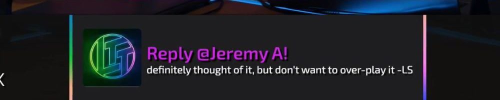 Reply @Jeremy A! definitely thought of it, but don't want to over-play it -LS