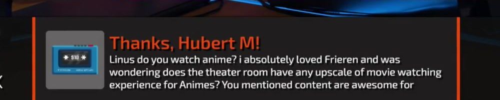 Thanks, Hubert M! Linus do you watch anime? i absolutely loved Frieren and was wondering does the theater room have any upscale of movie watching experience for Animes? You mentioned content are awesome for