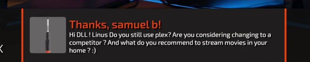 Thanks, samuel b! Hi DLL! Linus Do you still use plex? Are you considering changing to a competitor ? And what do you recommend to stream movies in your home ?:)