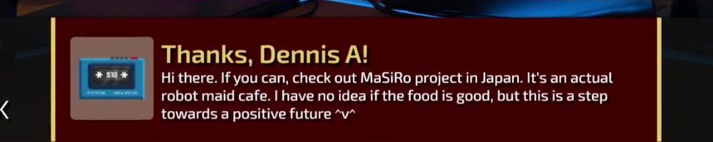 Thanks, Dennis A! Hi there. If you can, check out MaSiRo project in Japan. It's an actual robot maid cafe. I have no idea if the food is good, but this is a step towards a positive future ^v^