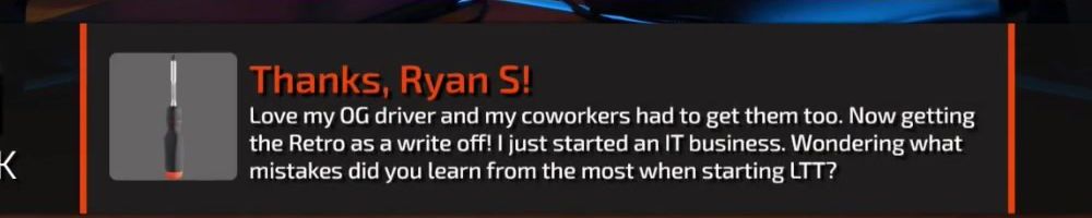 Thanks, Ryan S! Love my OG driver and my coworkers had to get them too. Now getting the Retro as a write off! I just started an IT business. Wondering what mistakes did you learn from the most when starting LTT?