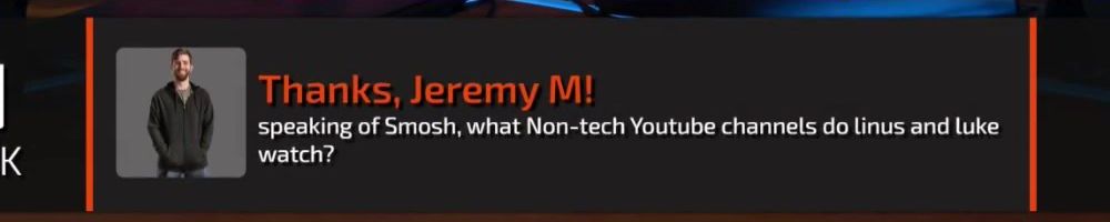 Thanks, Jeremy M! speaking of Smosh, what Non-tech Youtube channels do linus and luke watch?