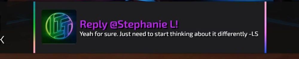 Reply @Stephanie L! Yeah for sure. Just need to start thinking about it differently -LS