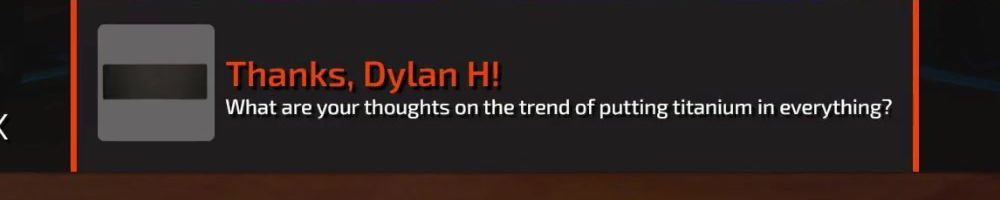 Thanks, Dylan H! What are your thoughts on the trend of putting titanium in everything?