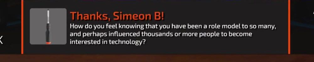 Thanks, Simeon B! How do you feel knowing that you have been a role model to so many, and perhaps influenced thousands or more people to become interested in technology?