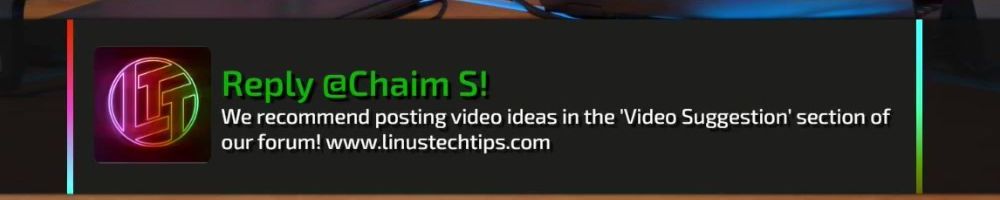 Reply @Chaim S! We recommend posting video ideas in the 'Video Suggestion' section of our forum! www.linustechtips.com
