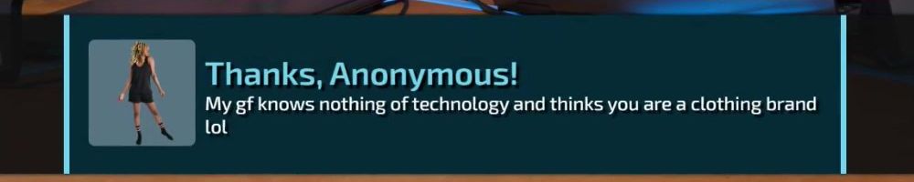 Thanks, Anonymous! My gf knows nothing of technology and thinks you are a clothing brand lol