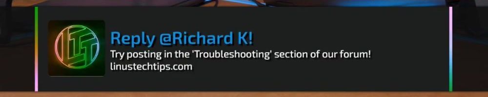 Reply @Richard K! Try posting in the 'Troubleshooting' section of our forum! linustechtips.com