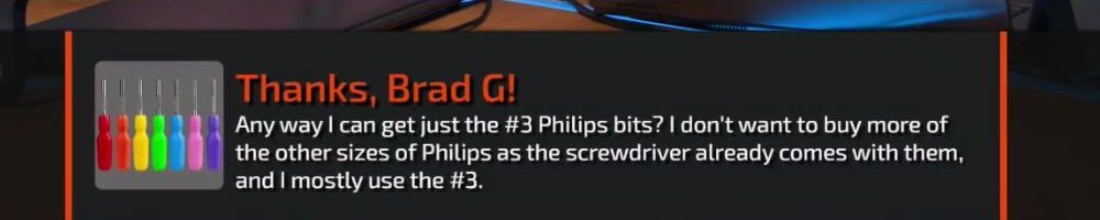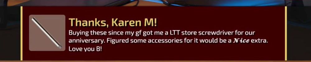 Thanks, Karen M! Buying these since my gf got me a LTT store screwdriver for our anniversary. Figured some accessories for it would be a Nice extra. Love you B!