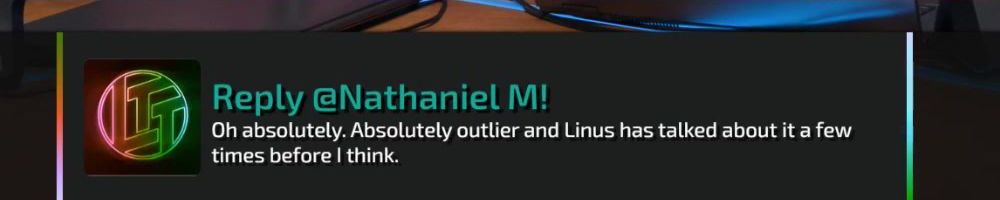 Reply @Nathaniel M! Oh absolutely. Absolutely outlier and Linus has talked about it a few times before I think.