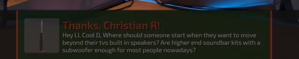 Thanks, Christian R! Hey LL Cool D, Where should someone start when they want to move beyond their tvs built in speakers? Are higher end soundbar kits with a subwoofer enough for most people nowadays?
