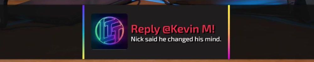 Reply @Kevin M! Nick said he changed his mind.