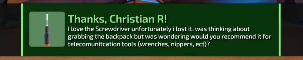Thanks, Christian R! I love the Screwdriver unfortunately i lost it. was thinking about grabbing the backpack but was wondering would you recommend it for telecomunitcation tools (wrenches, nippers, ect)?