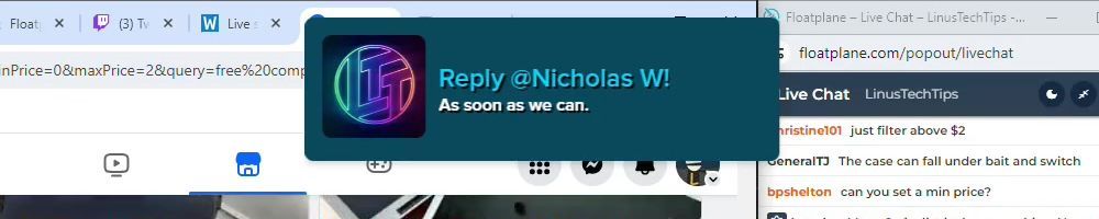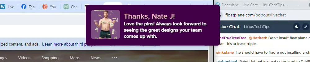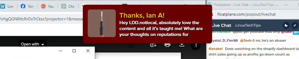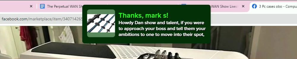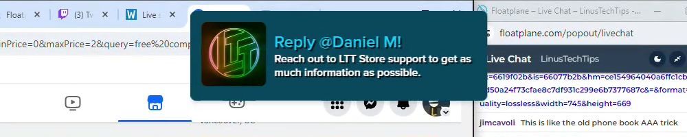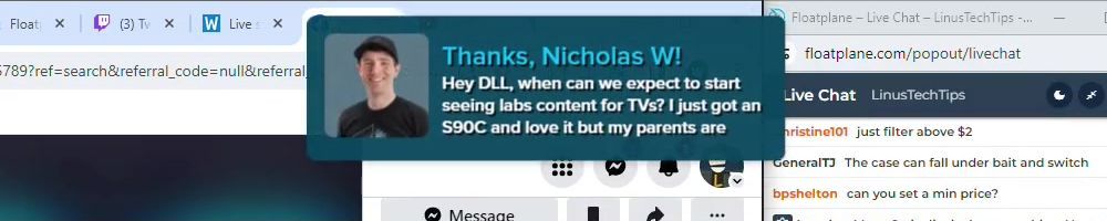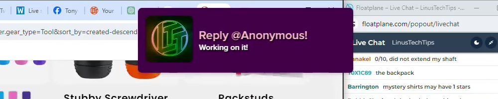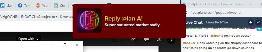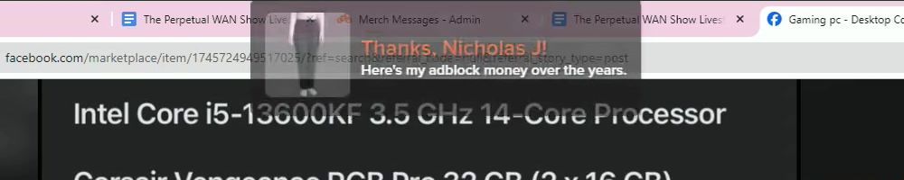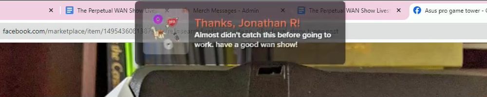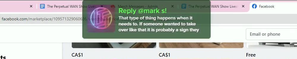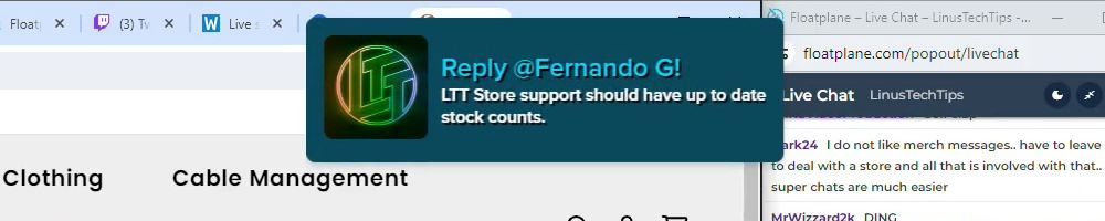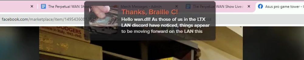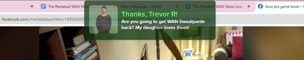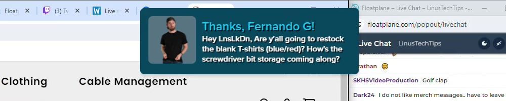 Hint: Use CTRL + F to search messages in this show, or use Whenplane's WAN Show Search tool to search for messages in all shows. Make sure that the "Merch Messages" box is checked when you search for something.