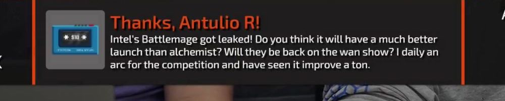 Thanks, Antulio R! Intel's Battlemage got leaked! Do you think it will have a much better launch than alchemist? Will they be back on the wan show? I daily an arc for the competition and have seen it improve a ton.