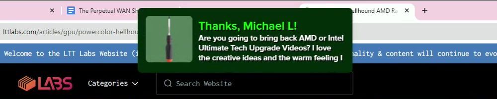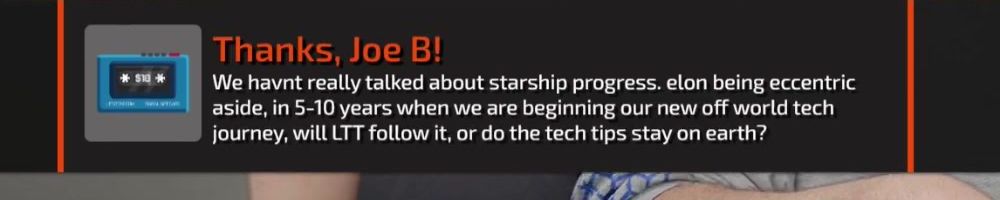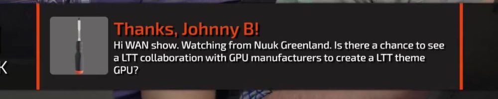 Thanks, Johnny B! Hi WAN show. Watching from Nuuk Greenland. Is there a chance to see a LTT collaboration with GPU manufacturers to create a LTT theme GPU?