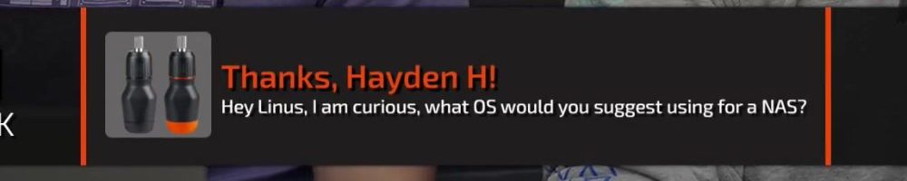 Thanks, Hayden H! Hey Linus, I am curious, what OS would you suggest using for a NAS?