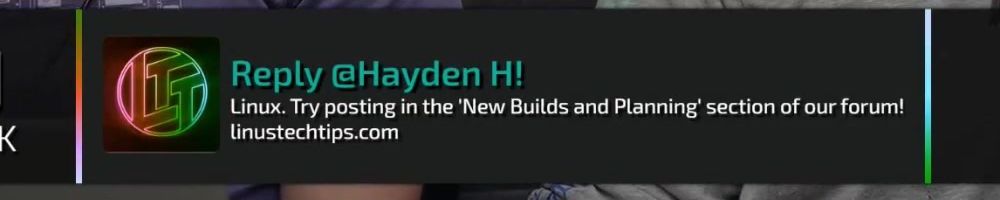 Reply @Hayden H! Linux. Try posting in the 'New Builds and Planning' section of our forum! linustechtips.com