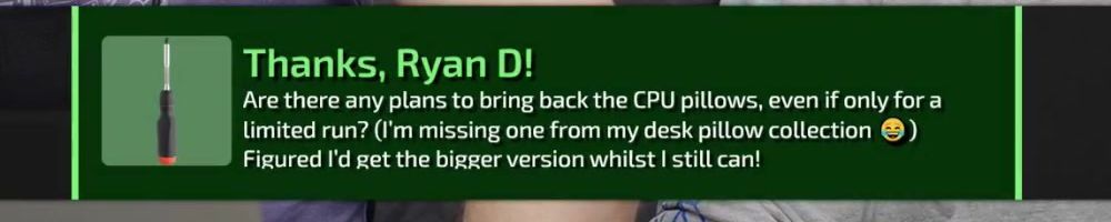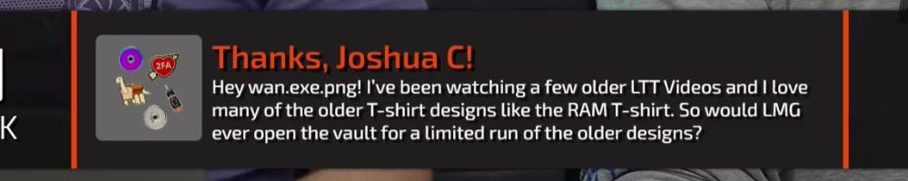 Thanks, Joshua C! Hey wan.exe.png! I've been watching a few older LTT Videos and I love many of the older T-shirt designs like the RAM T-shirt. So would LMG ever open the vault for a limited run of the older designs?