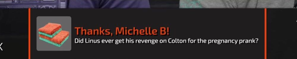 Thanks, Michelle B! Did Linus ever get his revenge on Colton for the pregnancy prank?