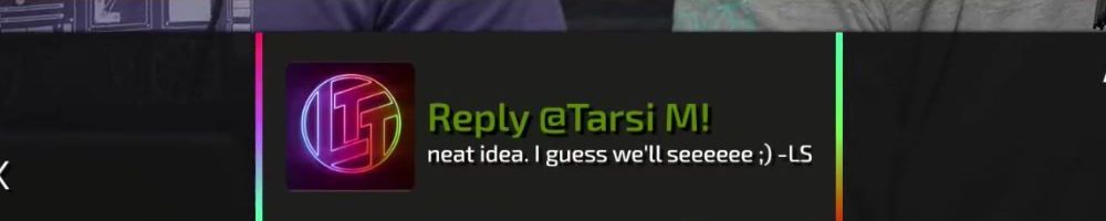Reply @Tarsi M! neat idea. I guess we'll seeeee ;) -LS