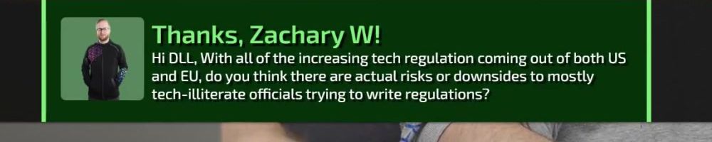 Thanks, Zachary W! Hi DLL, With all of the increasing tech regulation coming out of both US and EU, do you think there are actual risks or downsides to mostly tech-illiterate officials trying to write regulations?