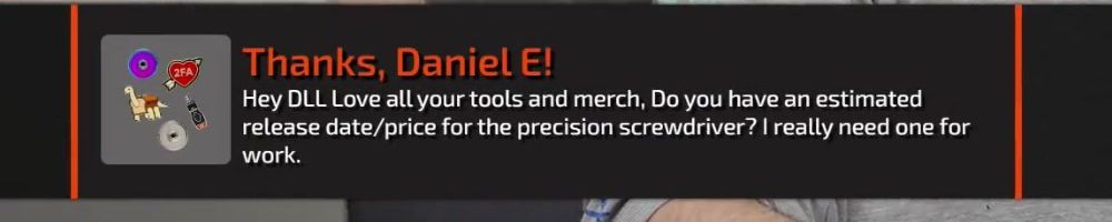 Thanks, Daniel E! Hey DLL Love all your tools and merch, Do you have an estimated release date/price for the precision screwdriver? I really need one for work.