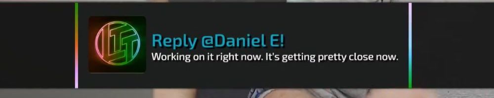 Reply @Daniel E! Working on it right now. It's getting pretty close now.