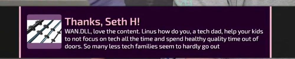 Thanks, Marshall W! Hey LLD Linus gets asked a lot of Qs about raising kids with tech during the LAN show. Ever considered doing a video guide that focuses on that topic? Or an actual channel based on audience dem