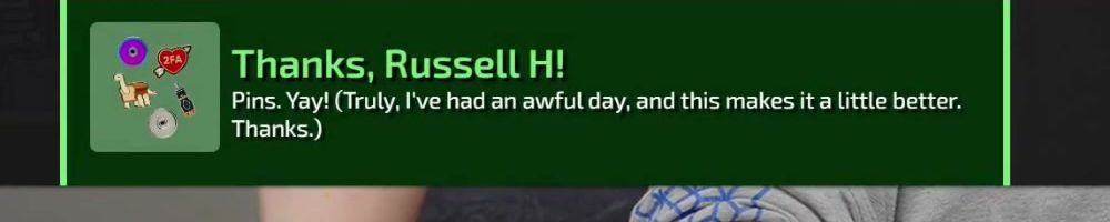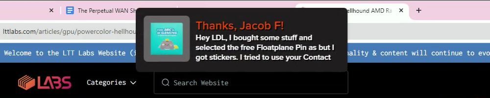 Thanks, Jacob F! Hey LDL, I bought some stuff and selected the free Floatplane Pin as but I got stickers. I tried to use your Contact form on the website.