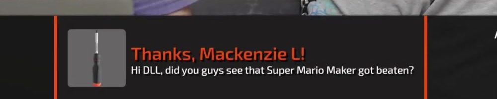 Thanks, Mackenzie L! Hi DLL, did you guys see that Super Mario Maker got beaten?