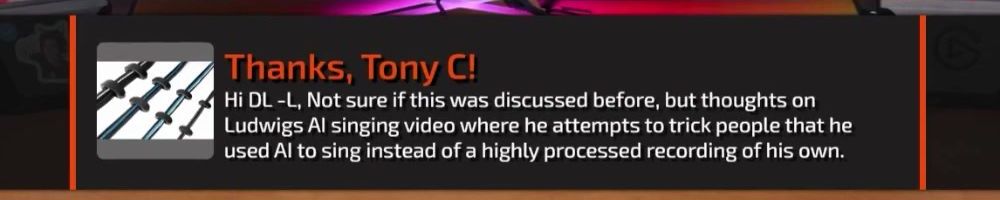 Hi DL -L, Not sure if this was discussed before, but thoughts on Ludwigs Al singing video where he attempts to trick people that he used Al to sing instead of a highly processed recording of his own.