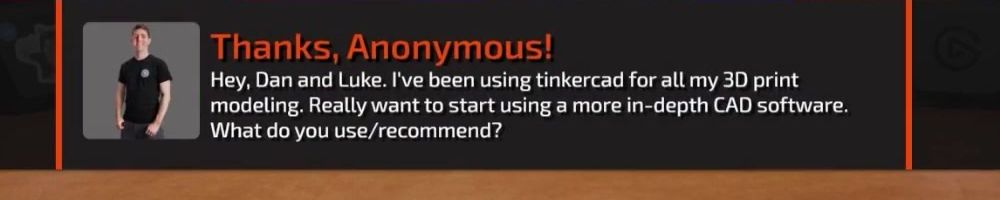 Hey, Dan and Luke. I've been using tinkercad for all my 3D print modeling. Really want to start using a more in-depth CAD software. What do you use/recommend?