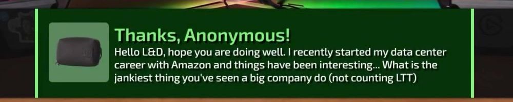 Hello L&D, hope you are doing well. I recently started my data center career with Amazon and things have been interesting... What is the jankiest thing you've seen a big company do (not counting LTT)