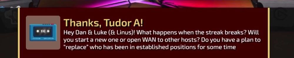 Hey Dan & Luke (& Linus)! What happens when the streak breaks? Will