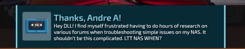 Hey DLL! I find myself frustrated having to do hours of research on various forums when troubleshooting simple issues on my NAS. It shouldn't be this complicated. LTT NAS WHEN?