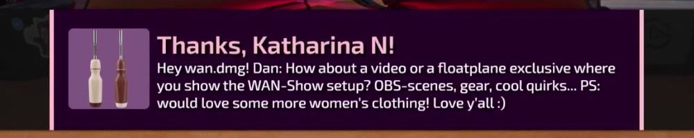 Hint: Use CTRL + F to search messages in this show, or use Whenplane's WAN Show Search tool to search for messages in all shows.