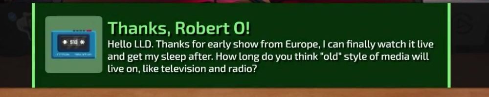 Hello LLD. Thanks for early show from Europe, I can finally watch it live and get my sleep after. How long do you think "old" style of media will live on, like television and radio?