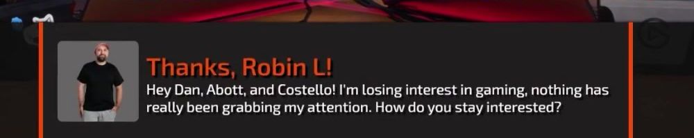 Hey Dan, Abott, and Costello! I'm losing interest in gaming, nothing has really been grabbing my attention. How do you stay interested?